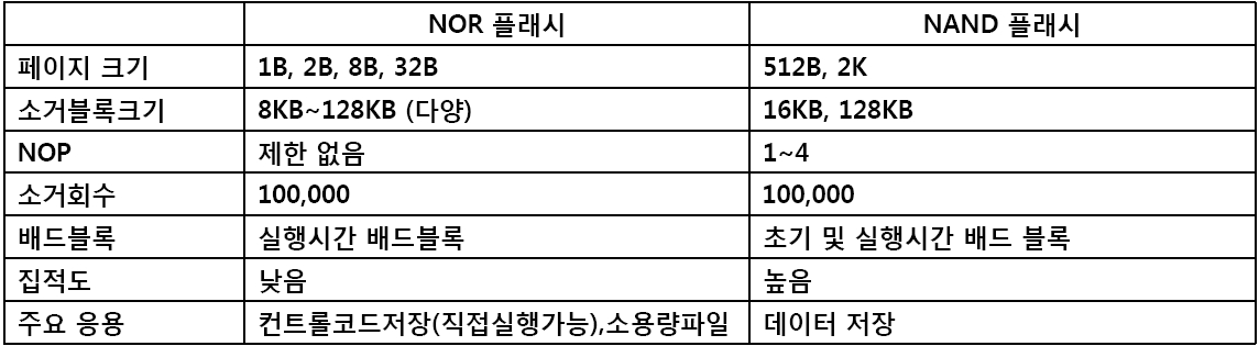 - 플래시의 Cell 은 옥사이드로 구성되어 있어 비 휘발성